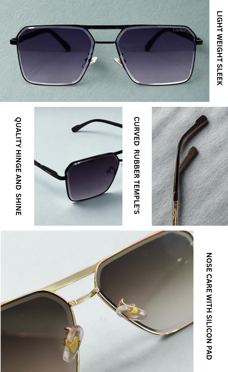 This Cartier-inspired square frame is crafted for those who value sharp design and refined finishing. The bold front shape delivers a strong, confident look, while the premium metal construction ensures long-term durability. Finished with precision-polished side legs and soft adjustable nose pads, it offers a secure, comfortable fit for all-day wear. Designed to pair effortlessly with formal and casual outfits, this frame stands out through its balance of luxury aesthetics and everyday practicality.
